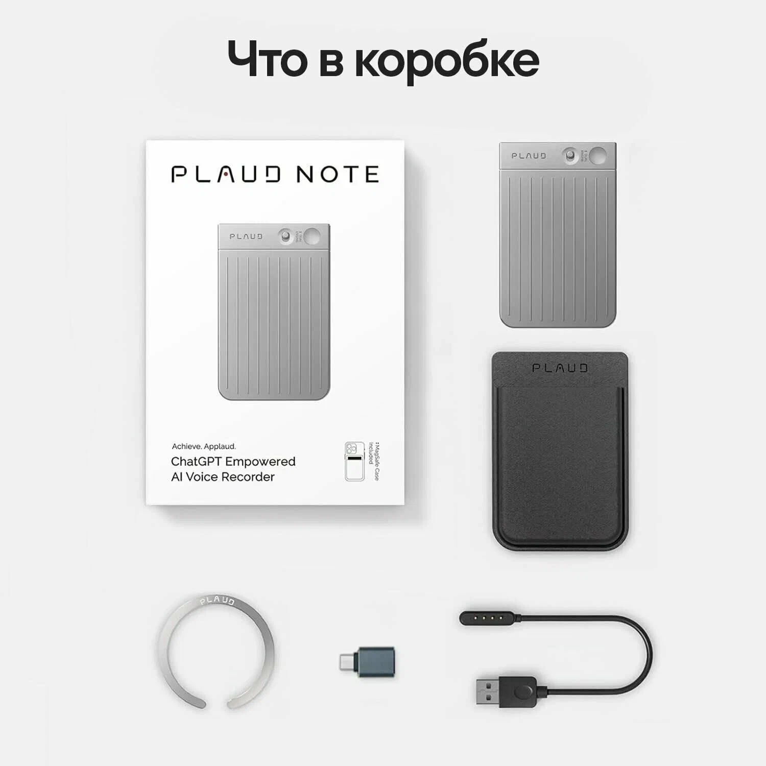 Диктофон Plaud Note ChatGPT AI Voice Recorder Silver